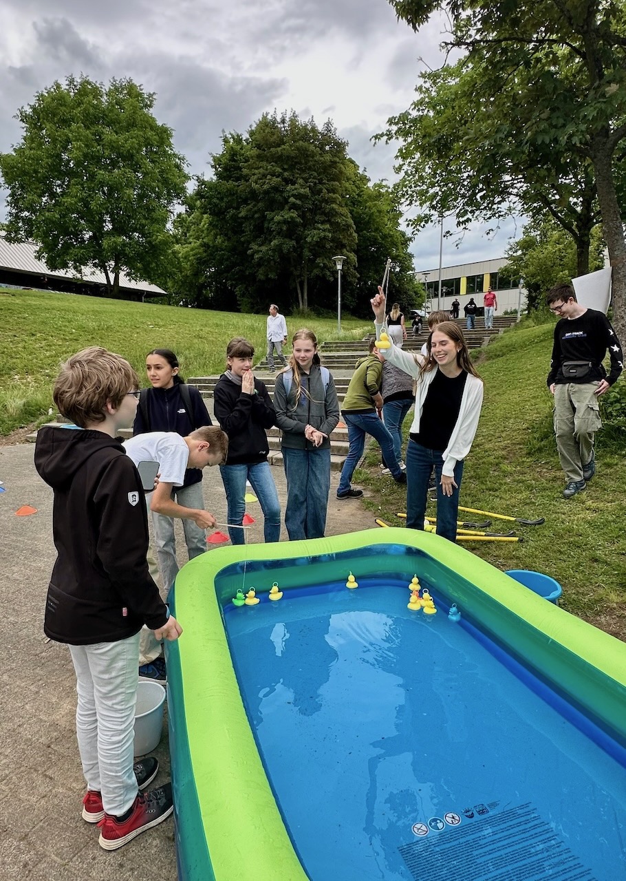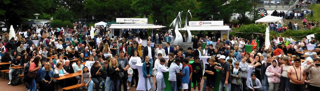 Mit viel Herzblut haben wir – 45 Klassen, Lehrkräfte, Schulleitung, Elternschaft und viele Helfer – ein buntes Programm auf die Beine gestellt: Mitmachstationen, Wasserspiele, Sportaktionen, Entenangeln und leckeres Essen von Foodtrucks und Schülergruppen. Unser Förderverein hat eine riesige Tombola ausgerichtet mit Gewinnen, gespendet von zahlreichen Krifteler Betrieben.