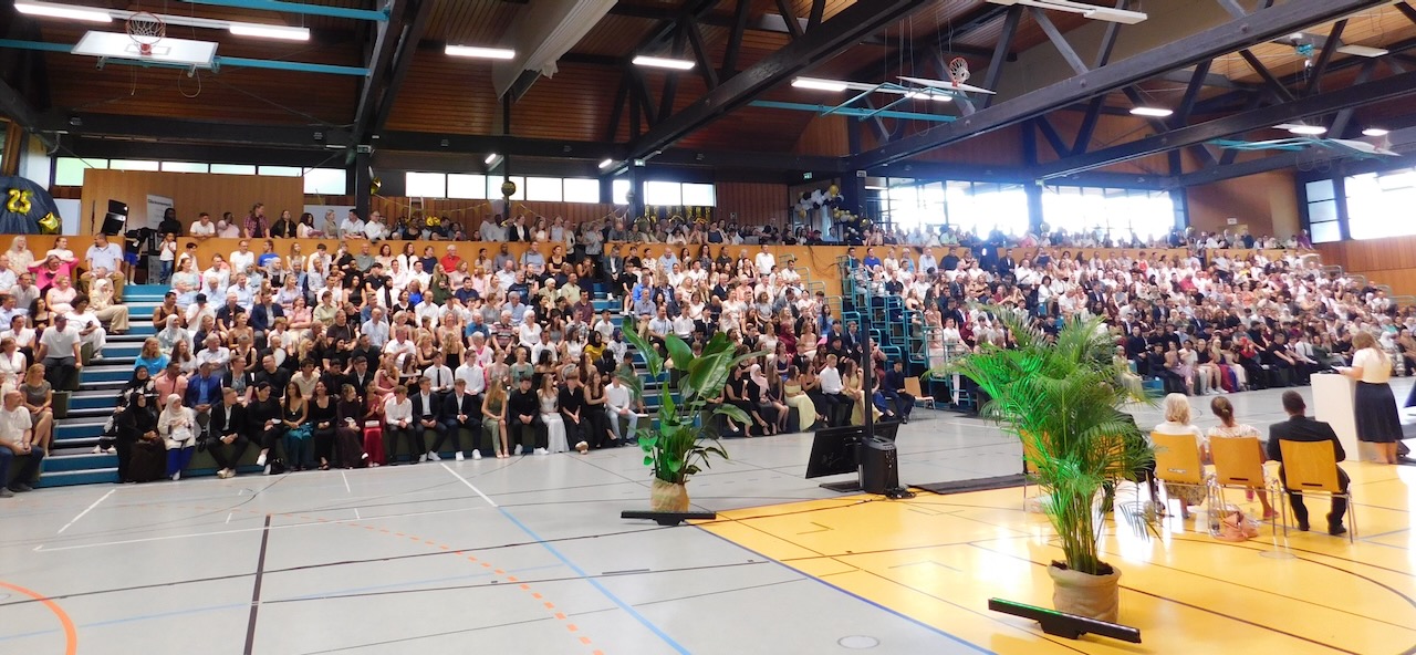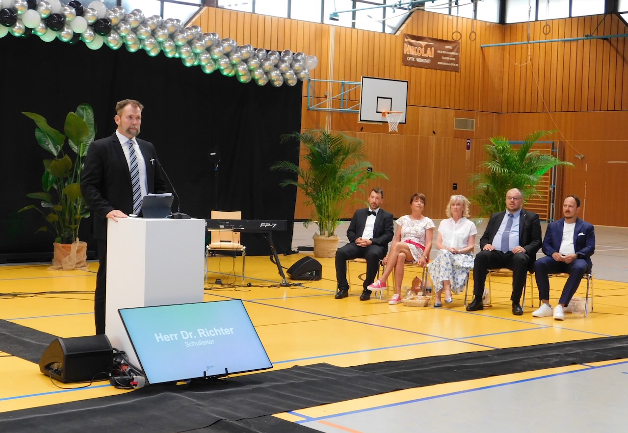 Mit einem Augenzwinkern begrüßte unser Schulleiter Dr. Richter seine Schülerinnen und Schüler: „Schön, dass ihr weg seid.“ Und fügte dann ernsthafter hinzu: „Ihr habt es geschafft – meinen herzlichen Glückwunsch!“
