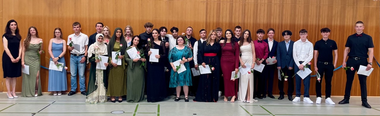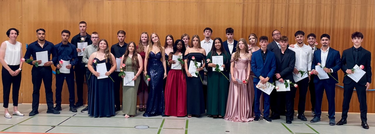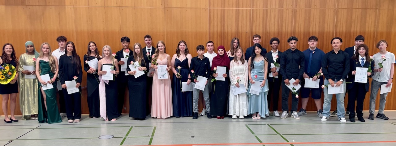 Von den insgesamt 79 Realschülern erhielten 53 die Eignung für die Fachoberschule und 45 zusätzlich die Eignung für den Besuch einer gymnasialen Oberstufe. Hier glänzten Sarina Müller, Luca Weise und Ege Kaan Özelbistanli (alle R10a, Durchschnitt: 1,1), Salvatore Loggia (R10b,1,3) und Nils Schimpf (R10c,1,8)