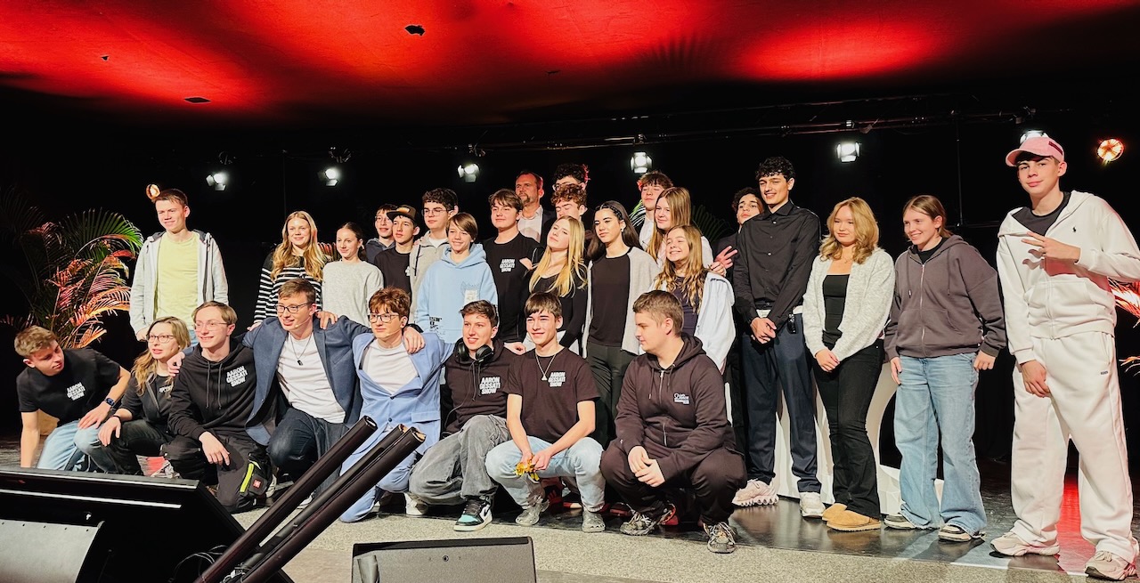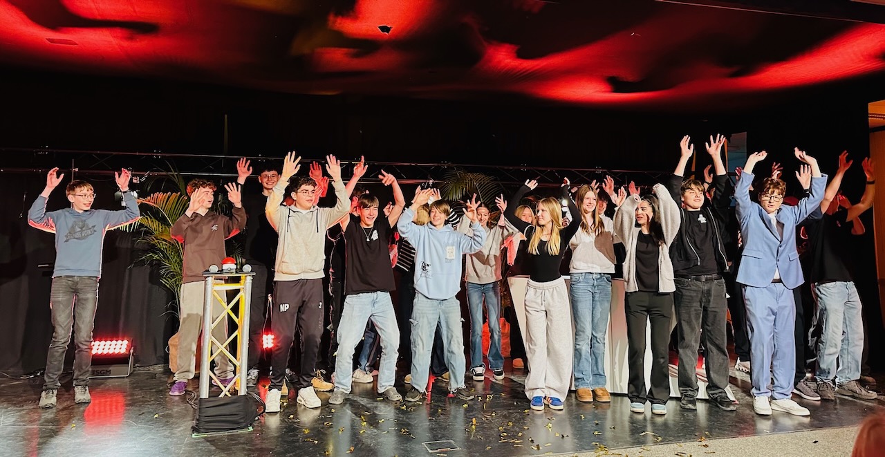 Ein „Lifesong“ ist auch dabei: „Peace Please“, der Song aus dem Finale 2025 von „The Voice Kids“, der zur aktuellen politischen Situation passt. Die 14-jährige Sängerin Lilo Bader rockt den Saal, der Applaus ist überwältigend. Am Ende tanzt die gesamte Crew mit dem Publikum auf der Bühne. Hände fliegen in die Luft, „Gute Laune“ ist Programm. Überall gelöste, fröhliche Gesichter. Dr. Richter lobt die Schüler-Crew und erklärt: Für diese Performance gäbe es im Zeugnis eine glatte Eins.